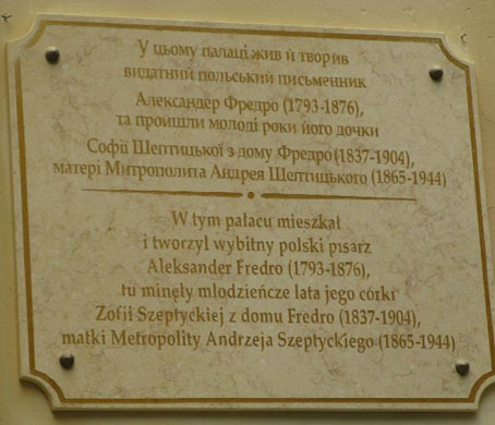 Фредро та роду Шептицьких. Пам’ятна кімната була у