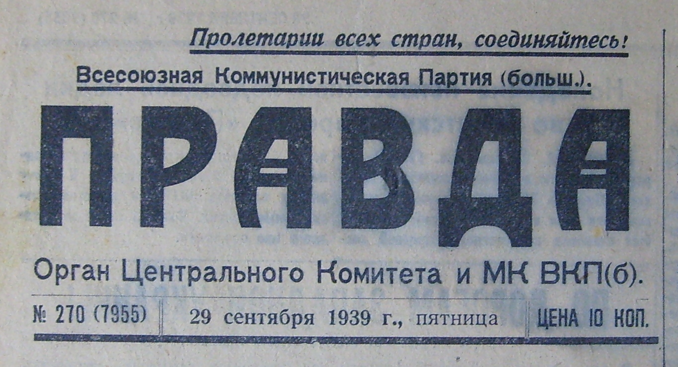 У газеті «Ленинградская правда» від 28 листопада 1939 р. було