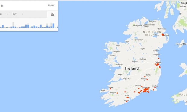 місця, які я відвідав за минулі 12 місяців в Ірландії. Зафіксований час доби,