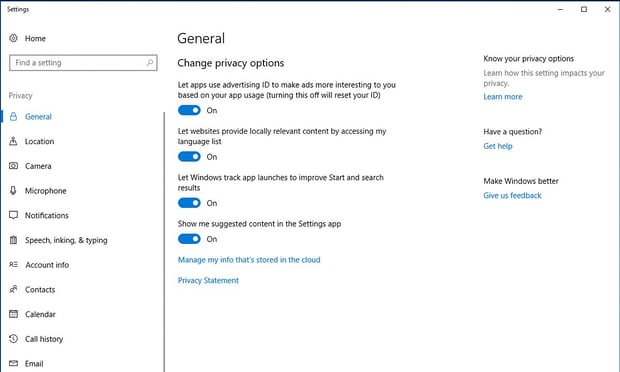 де всі варіанти увімкнені за замовчуванням під час встановлення Windows 10).