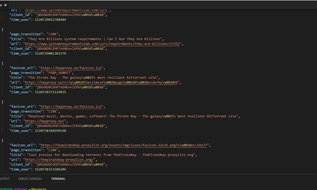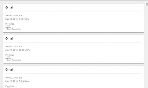 підсумки того, що містять тисячі файлів, отримані мною від сервісу Google Activity.
