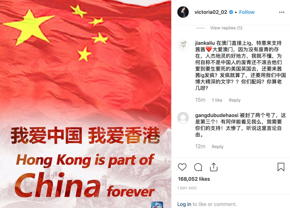 тих китайських акторів, які публічно підтримали дії поліції. Контрпропаганда Китаю Вона