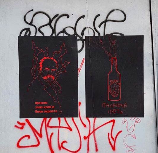 образи та вірші українських поетів. Першим був трафарет Василя Стуса —