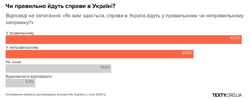 Кожен четвертий респондент не дав відповіді на запитання, як ідуть справи в Україні. А серед опитаних, які відповіли,