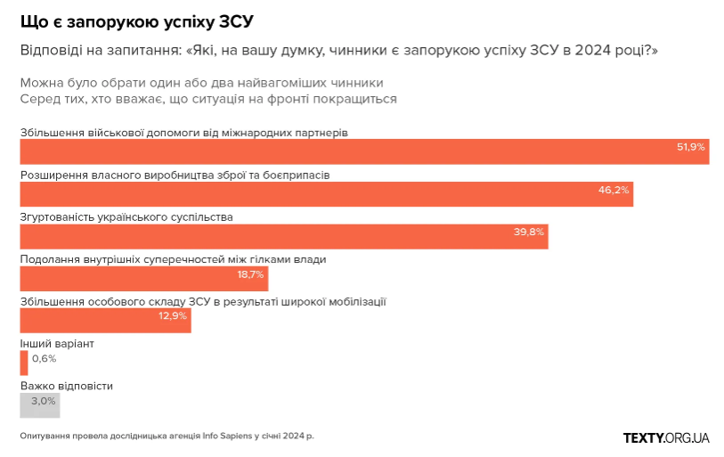 Можливе покращення повʼязували зі збільшенням військової допомоги від міжнародних партнерів, розширенням власного виробництва зброї та боєприпасів і згуртованістю українського суспільства.