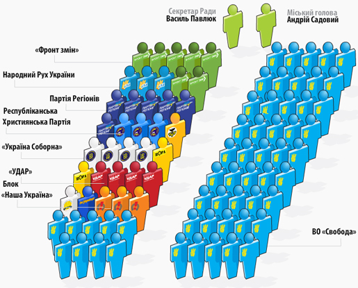 соборна», Рух, «Фронт змін», Партія реґіонів).
