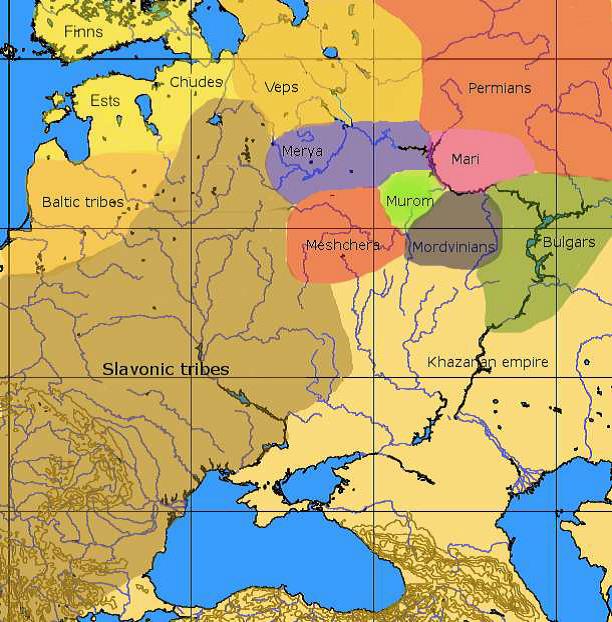 займалі фіна-угорскія плямёны; гэтыя славянскія плямёны далі пачатак яшчэ адной