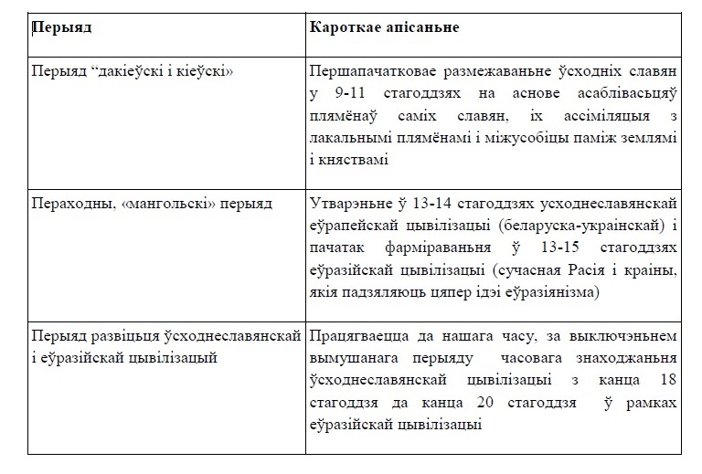 ўсходнімі славянамі дзьвюх цывілізацый – усходнеславянскай і еўразійскай -