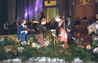 У кулуарах шановна публіка обмінювалася враженнями та припущеннями, хоча імена переможців нібито зберігалися у суворій таємниці. Позбавив ілюзій генеральний директор ТРК “Люкс” Роман Андрейко. Оголошуючи номінацію “Митець року”, в якій номінувалися чиновники, галерейники, музейники, театральні діячі тощо, і ще не глянувши у конверт і “не знаючи” про перемогу Оксани Караванської, він почав вітати тих, хто “вміє вбирати жінок”. Ті ж, хто вручав нагороди слідом за ним, намагалися знівелювати незручність. Наприклад, директор галереї “Ґердан” Юрко Бойко сказав, що зазирнув у конверт за лаштунками. Хоча, варто зазначити, конверти були заклеєні… Загальний урочистий настрій, як і належиться за законами театру, всіляко намагалася зруйнувати гальорка, яка вступила у діалог з усіма, хто виступав на сцені. Але на це альтернативне дійство ніхто не зважав, намагаючись максимально зберегти урочистість, апофеозом якої стало виконання обіцяного ще на прес-конференціях “Гімну Галичини”. Ним виявилася дивовижно знайома мелодія з незнайомим текстом. Якось звичніше було чути при такій музиці англомовне: All You Need Is Love... у виконанні безсмертної ліверпульської четвірки The Beatles. Шкода тільки, що їх не було відзначено у жодній з номінацій. Катерина Сліпченко |