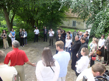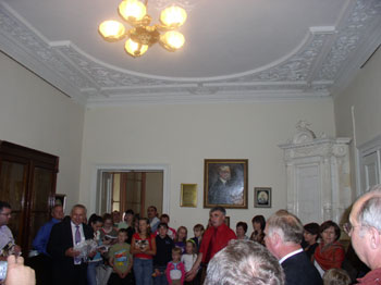 ![]() Перші відвідувачі відновленої кімнати-музею |