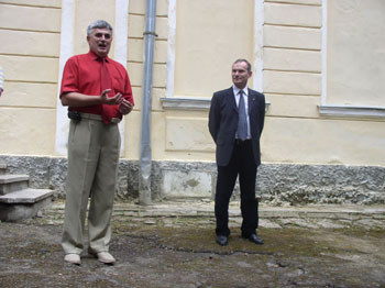 ![]() Головні промотори ревіталізації палацу А. Фредра - директор Вишнянського аграрного коледжу Дмитро Клебан і начальник відділу зовнішніх зв’язків та промоції Львівської обласної ради Тарас Возняк |