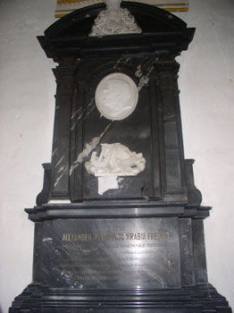 ![]() Пам'ятна плита над похованням А. Фредра (костел у Рудках) |