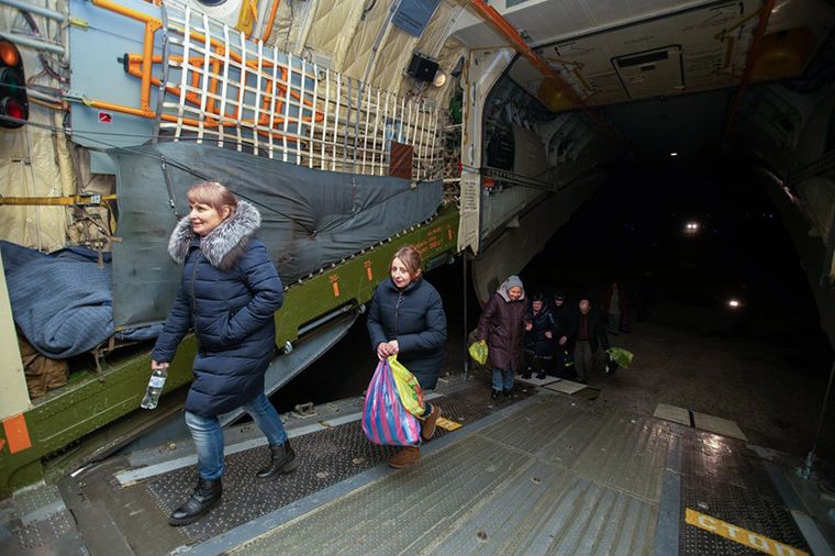 літак приймає пасажирів — звільнених з полону самопроголошених «Л/ДНР» громадян